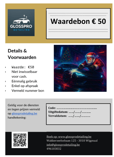 Bedrijfsnaam en BTW nummers (Indien je op naam van een bedrijf bestelt, opgepast Glosspro Detailing is vrijgesteld van BTW)