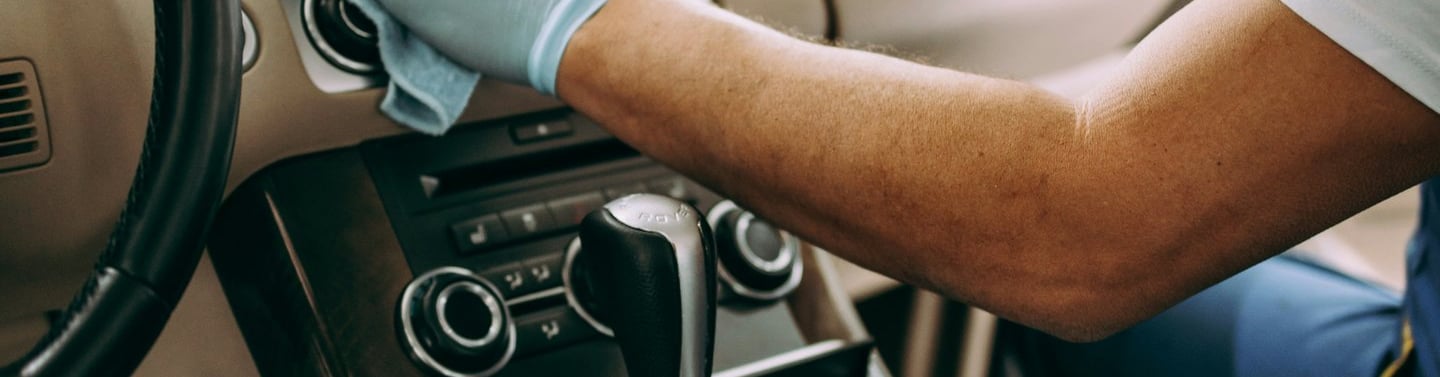 Stofvrij blazen van het dashboard, middenconsole, deurpanelen, stoelrails,...