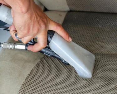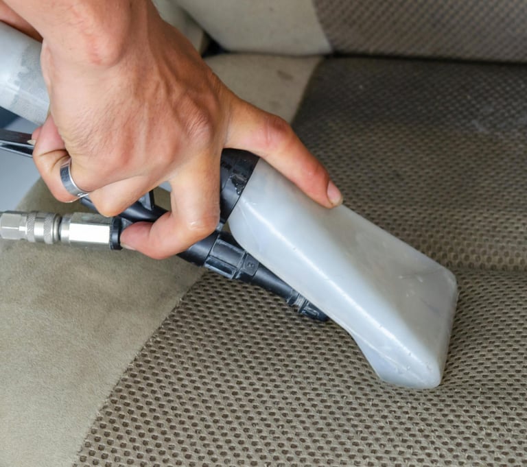 Aanbrengen Textiel protector op stoffen zetels, tapijten en matten zodat ze langer proper blijven en gemakkelijker te reinigen zijn bij een ongelukje.